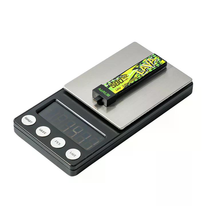 - Емкость 580mAh в формате 1S LiHV с максимальным напряжением 4.35V