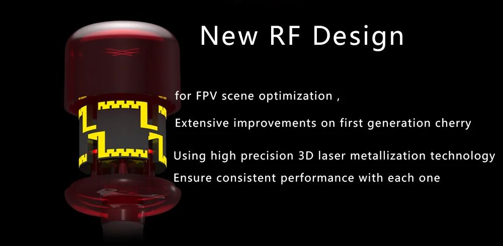 RUSHFPV Cherry2 Antenna II 5.8G — антенна второго поколения для FPV-видеолинка с круговой поляризацией, созданная на базе обновленного RF-дизайна. В этой версии переработана радиочасть, а также оптимизированы параметры под реальные FPV-сценарии, чтобы получить более стабильный результат «от экземпляра к экземпляру» и уверенное покрытие по диаграмме излучения.