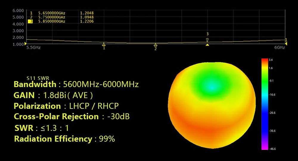 Широкий рабочий диапазон: 5500–6100 MHz.
