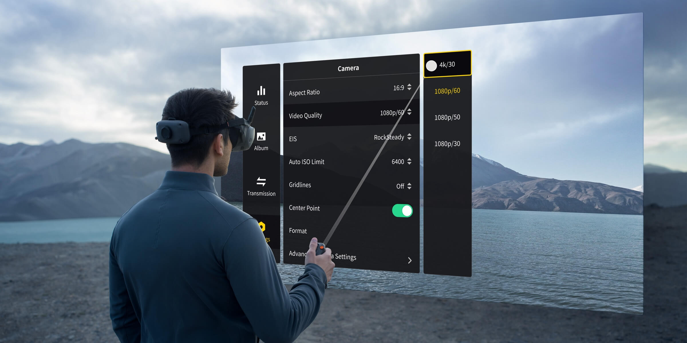 - AR Cursor: RC Motion 3 работает как “курсор” в меню до взлета или при зависании после торможения — меняйте настройки, не отпуская контроллер.