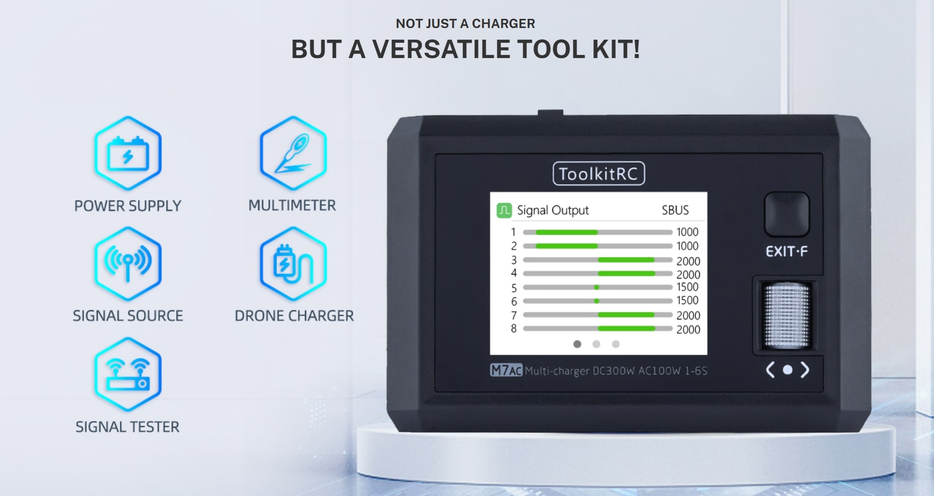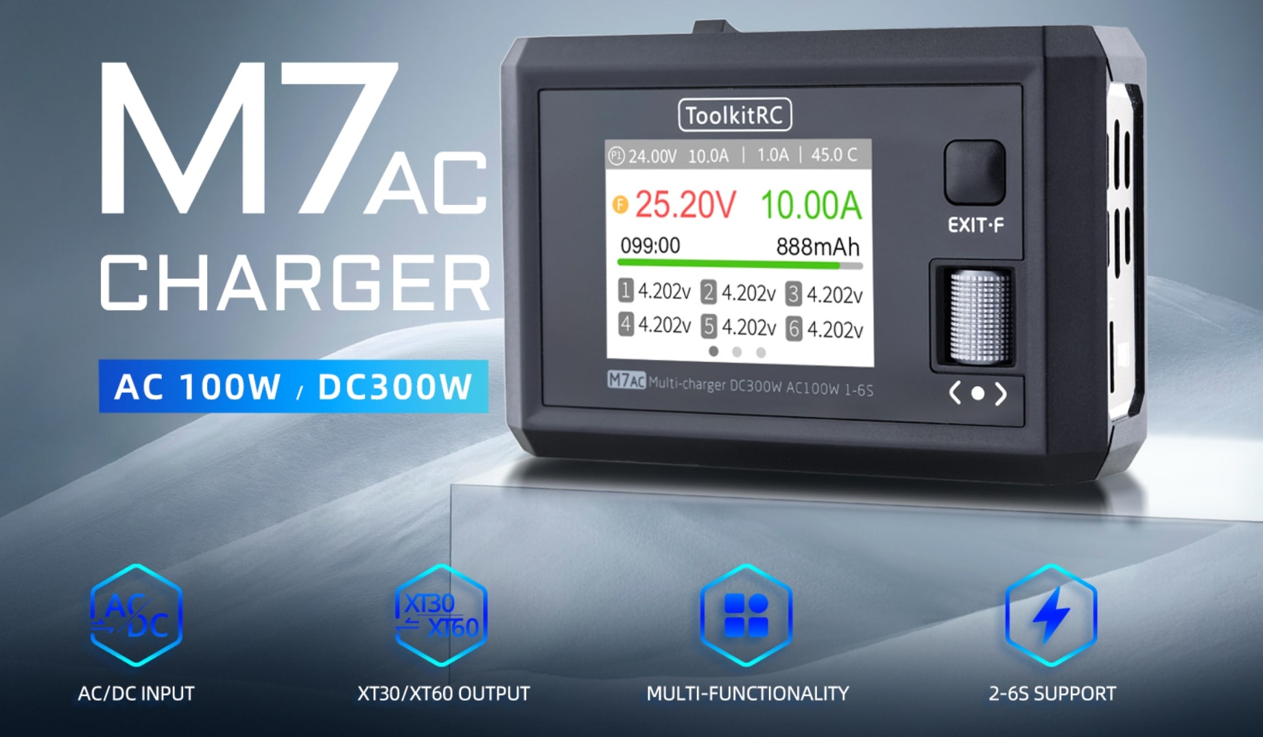 ToolkitRC M7AC — это универсальное решение для FPV-пилотов и моделистов, объединяющее зарядку, тестирование и питание оборудования в одном компактном корпусе.