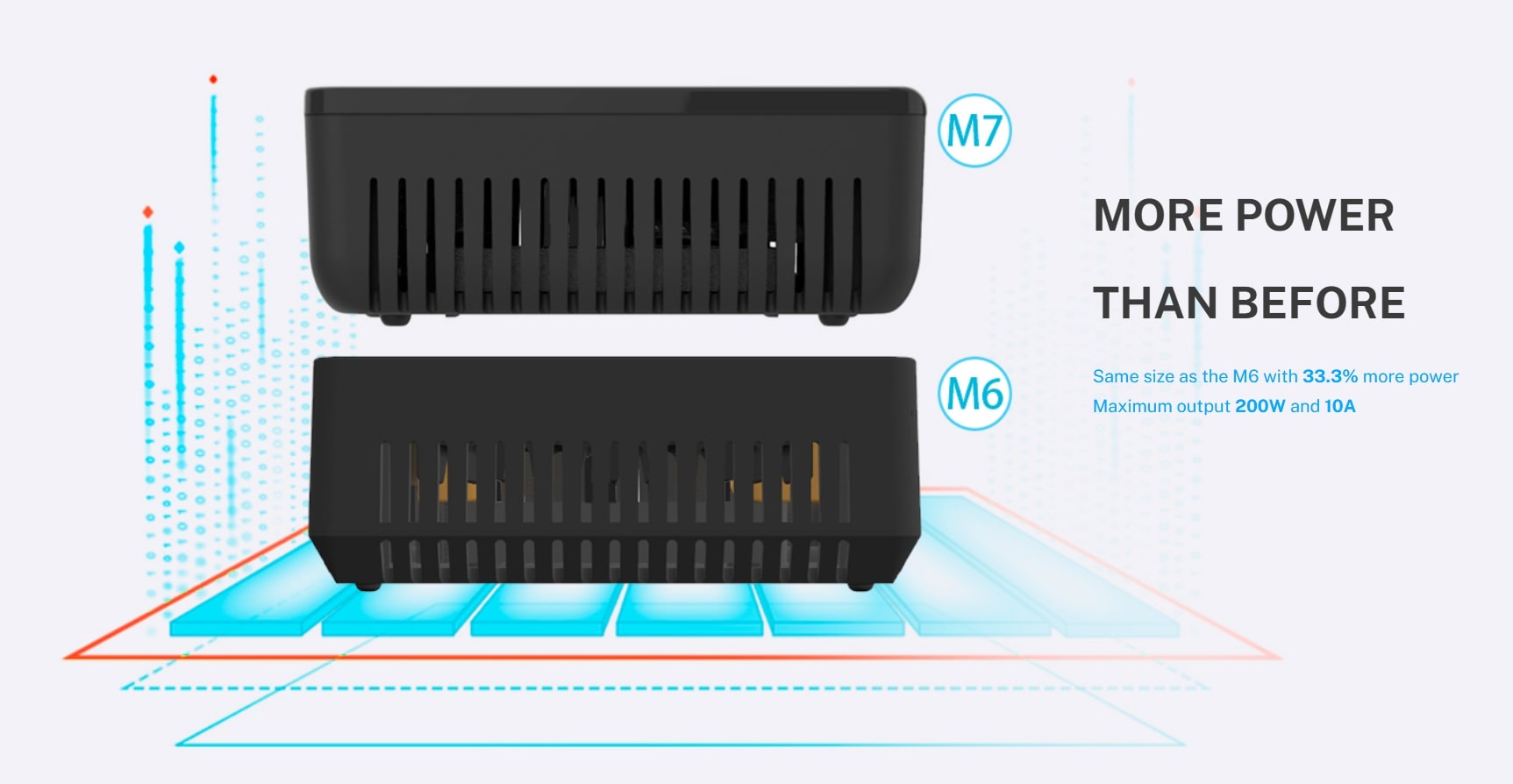 - 33% больше мощности при тех же габаритах. При размерах всего 73×51×27 мм устройство выдает 200 Вт / 10 А, обеспечивая быструю и безопасную зарядку любых аккумуляторов.
